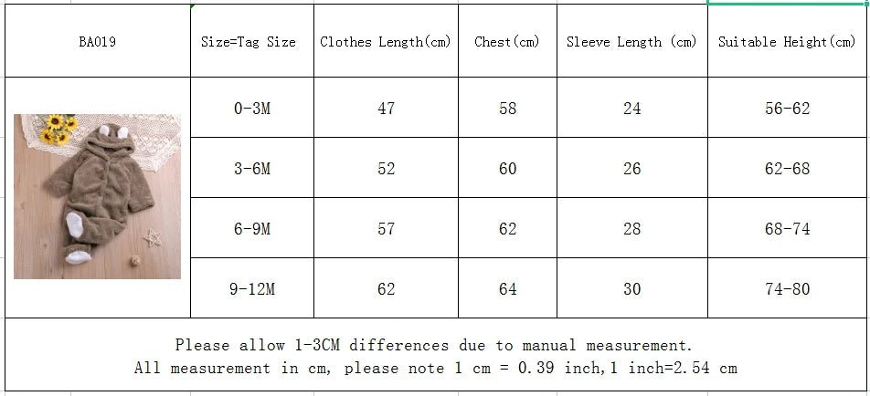 Warm Plush Bear Romper – Hooded Winter Baby Jumpsuit (0–12 Months)